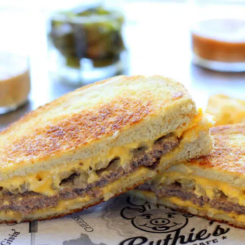The Patty Melt $0.00 Grilled 100% beef hamburger patty, diced caramelized onions, and melted American cheese on grilled sourdough bread. Category: Sandwiches